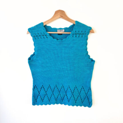Pima Cotton & Silk Collar Top with V-Neck, hand knit in supremely soft hand painted yarn. To make it special, we added a ribbon stitch design to set it apart.