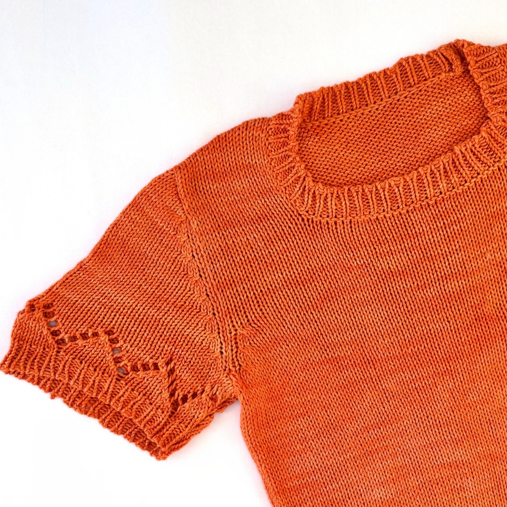 Pima Cotton & Silk Crewneck Top, hand knit in hand painted yarn, inspires an easy eleagance when wearing. Perfect for Spring and Summer festivities.
