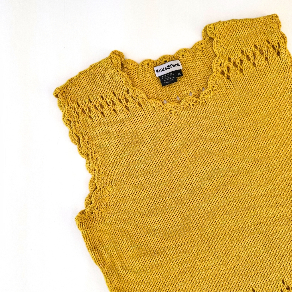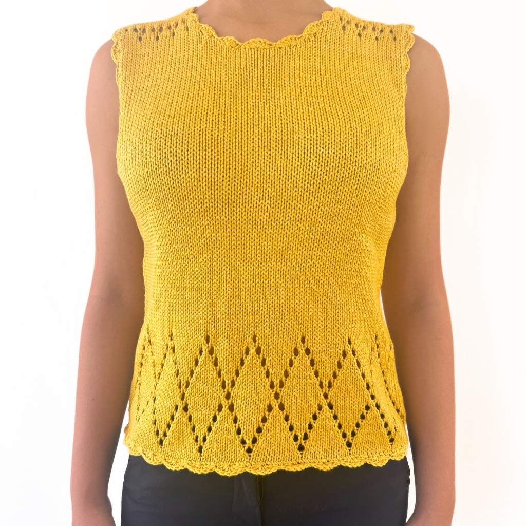 Scallop Trimmed Pima Cotton & Silk Tank. Supremely soft, hand knit in hand painted yarn
