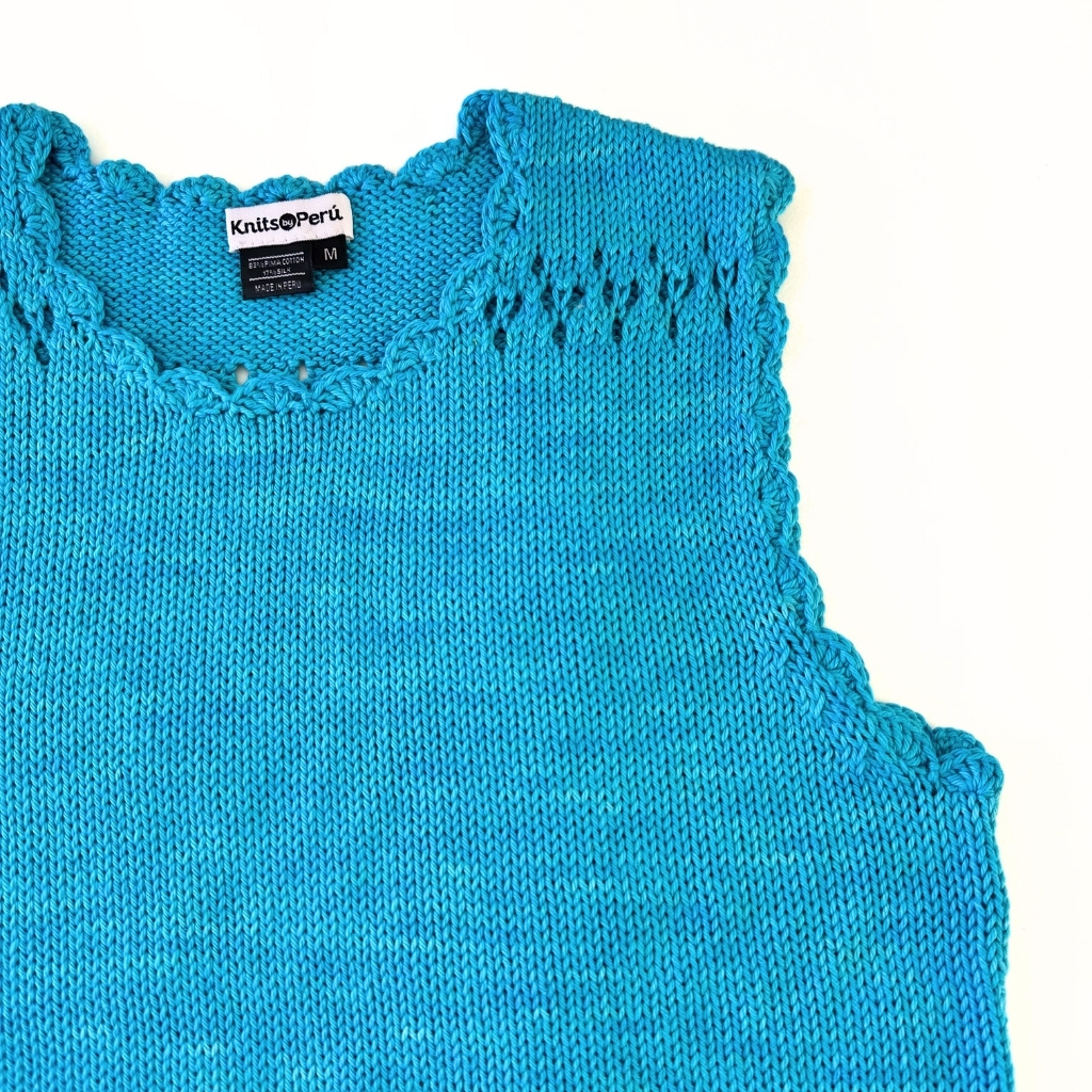 Scallop Trimmed Pima Cotton & Silk Tank. Supremely soft, hand knit in hand painted yarn